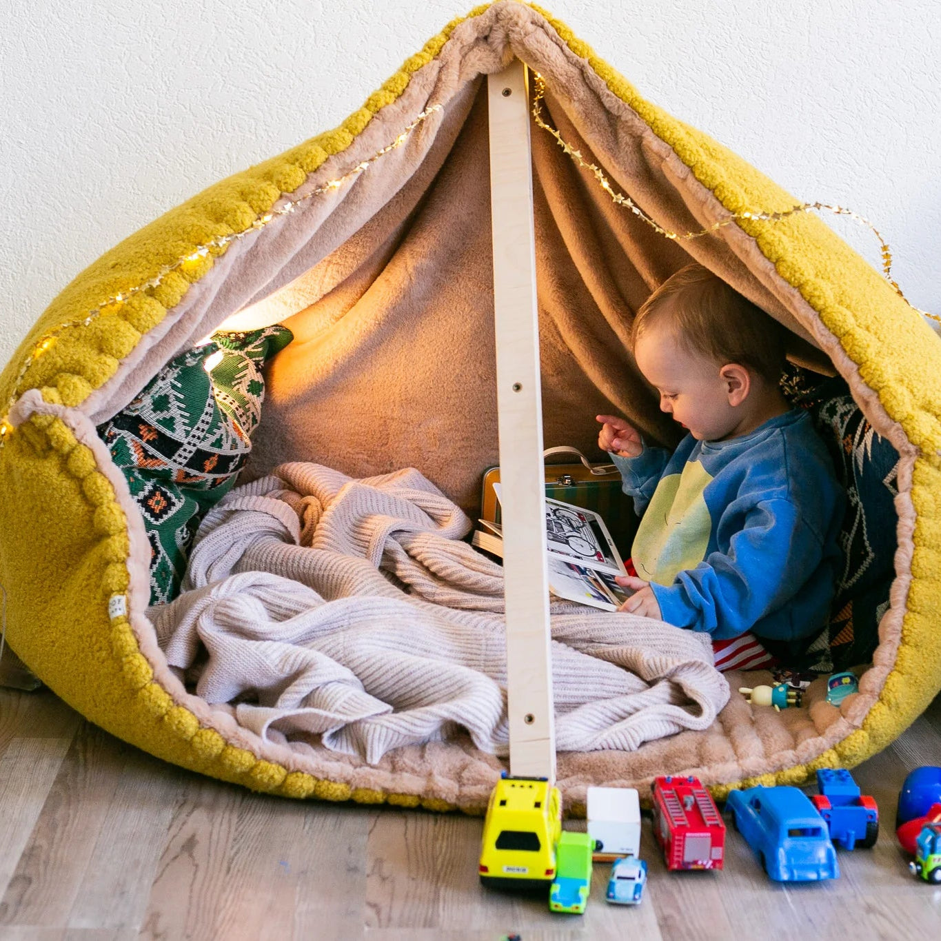 Designed for both kids and adults, this handcrafted cocoon offers a soft, soothing space to rest, play, or just breathe.